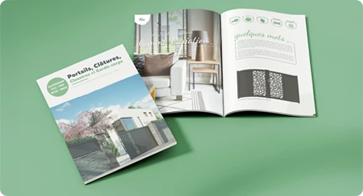 Jardimat : Création du nouveau catalogue A4 produits, deux pistes créatives présentées pour un document de 132 pages à la finale.
