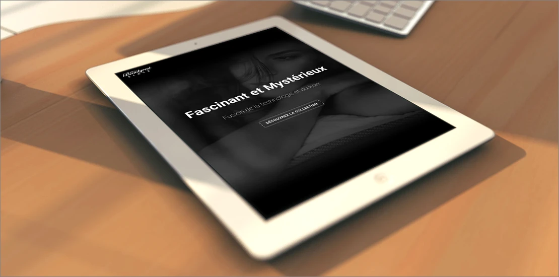 À partir du logo et de la charte graphique existants, créer le nouveau site vitrine de la marque. Faire ressortir le côté luxe de la marque en utilisant les éléments graphiques à notre disposition ainsi que la couleur noir qu’il fallait employer impérativement à grande échelle.