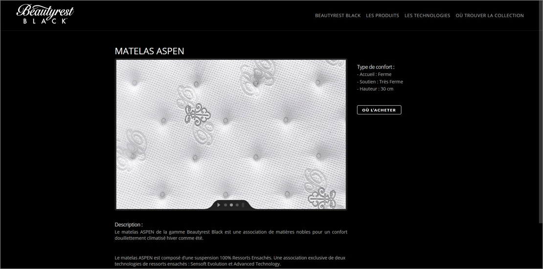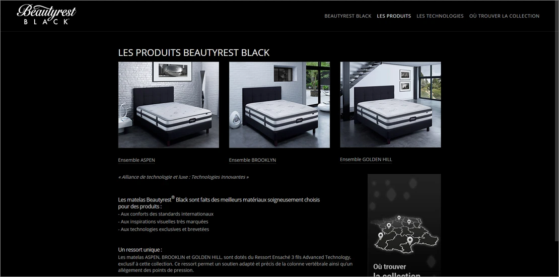 Site vitrine de la marque Beautyrest Black de Simmons