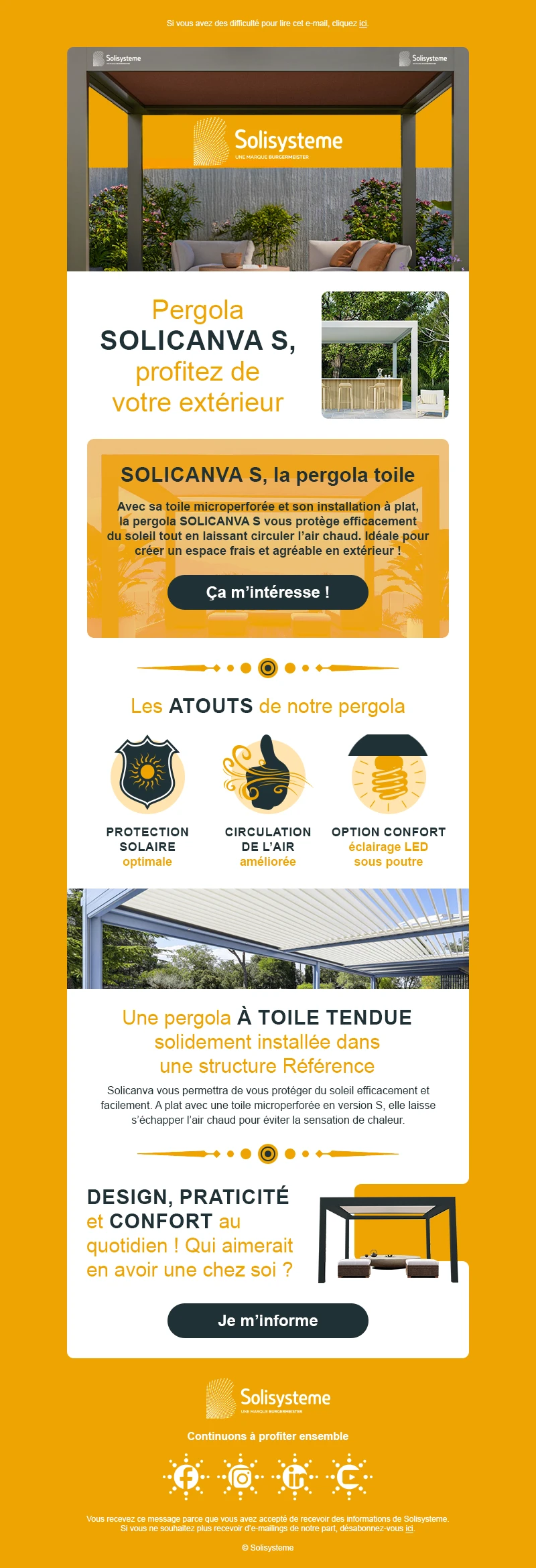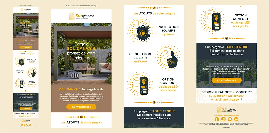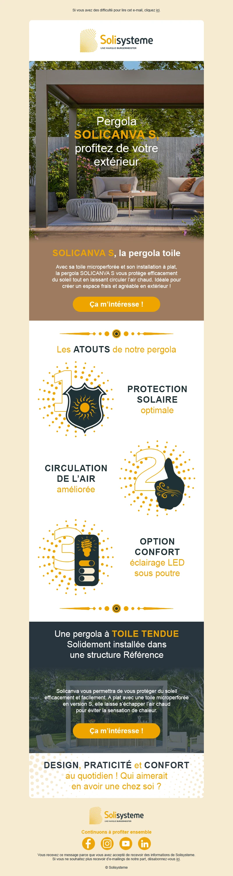 En tenant compte de la nouvelle charte graphique, du logo et de la “couleur” Solisysteme, imaginer ce que pourrait être le nouveau gabarit des e-mailings de Solisysteme.