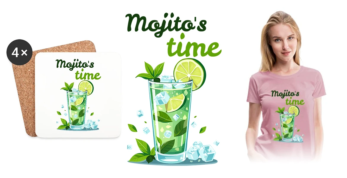 – Création du motif « Mojito’s Time » généré avec l’IA et retouches sur Photoshop