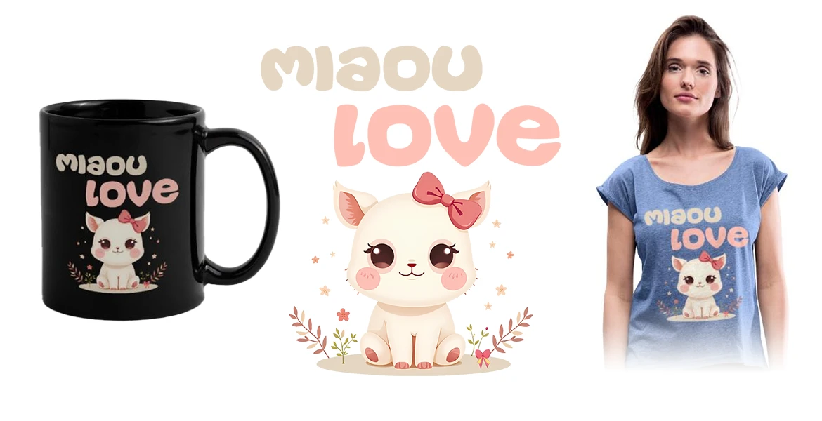 – Création du motif « Miaou Love », un petit chat couleurs pastels généré avec de l’IA et modifié avec Photoshop