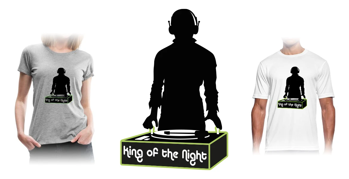 – Création du motif « DJ » en 2 couleurs adapté pour les supports : T-shirt, débardeur, polo, sweat, accessoires (casquette, coque mobile, sac banane…), mug