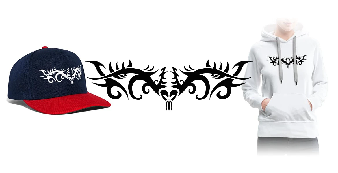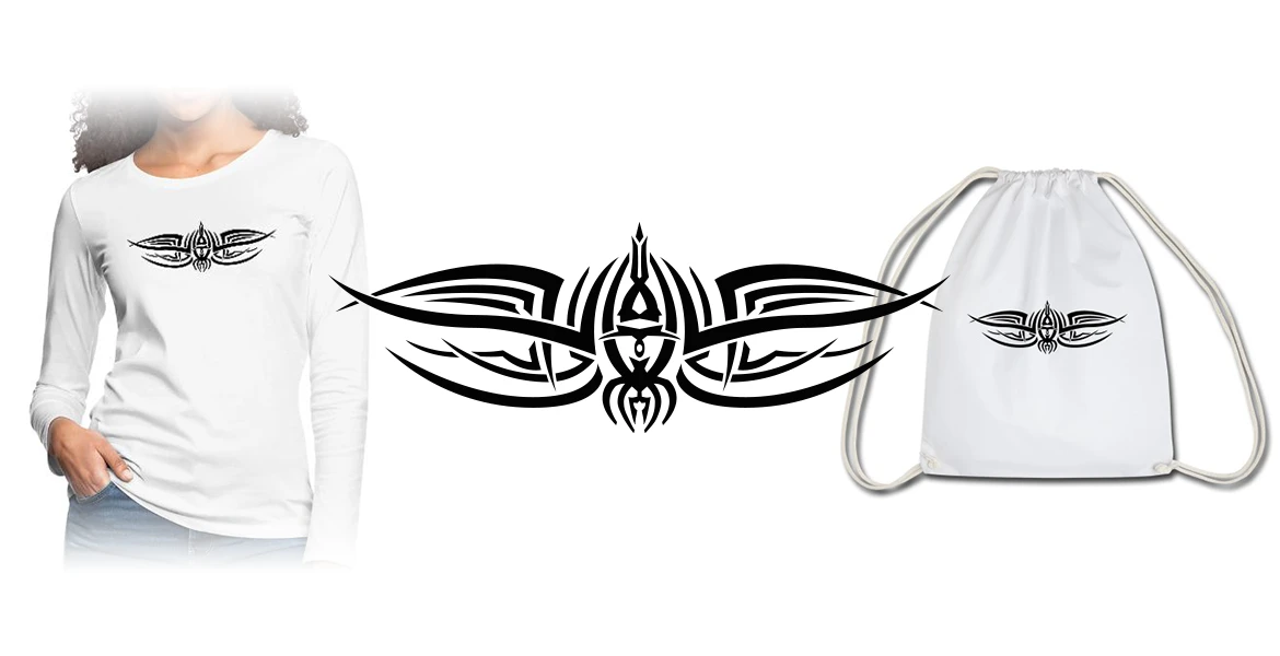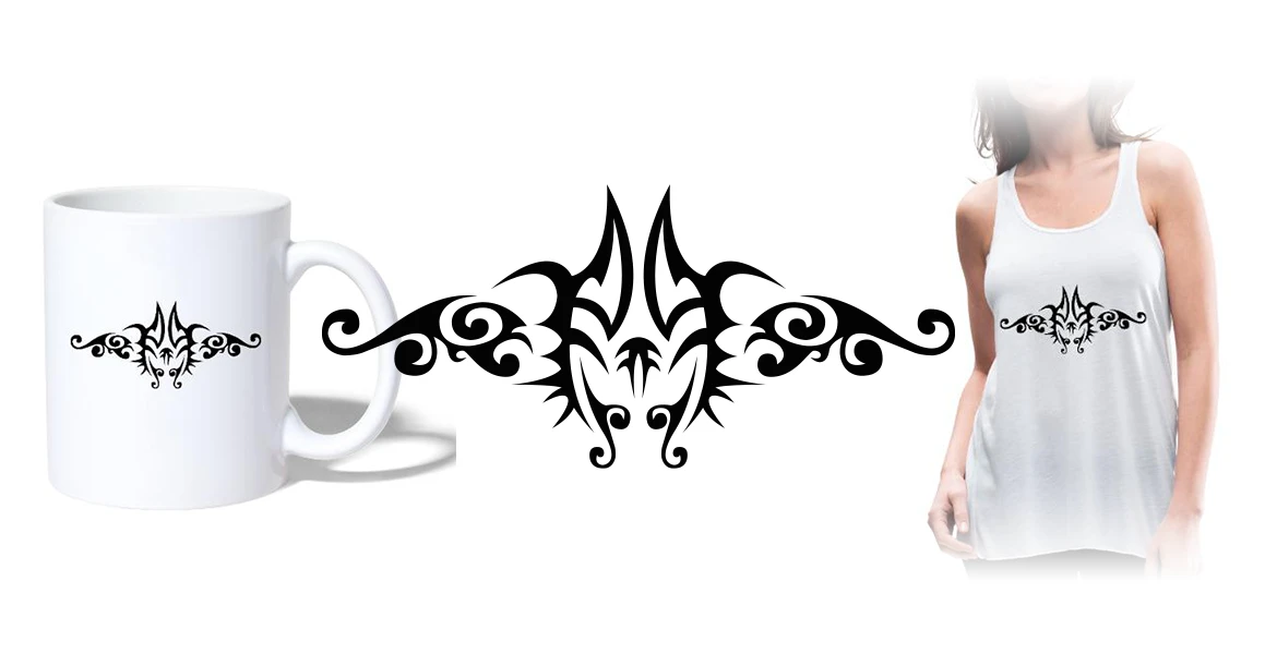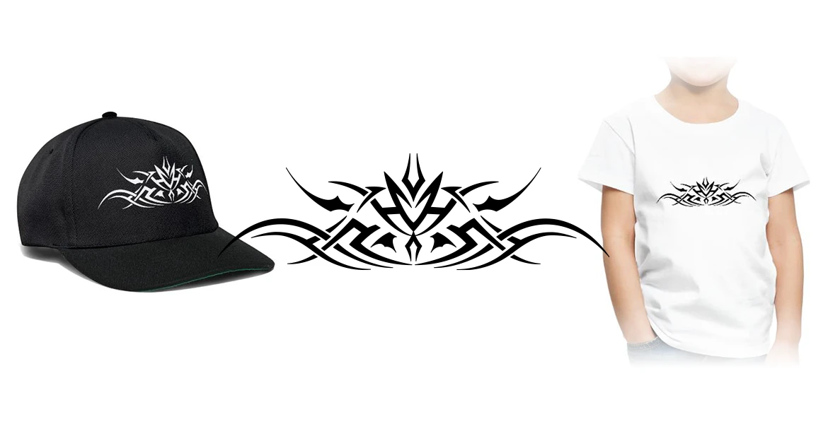 – Création de 8 motifs « Tribal » en 1 couleur adaptés pour les supports : T-shirt, débardeur, tablier, polo, sweat, accessoires (casquette, coque mobile, sac banane…), mug