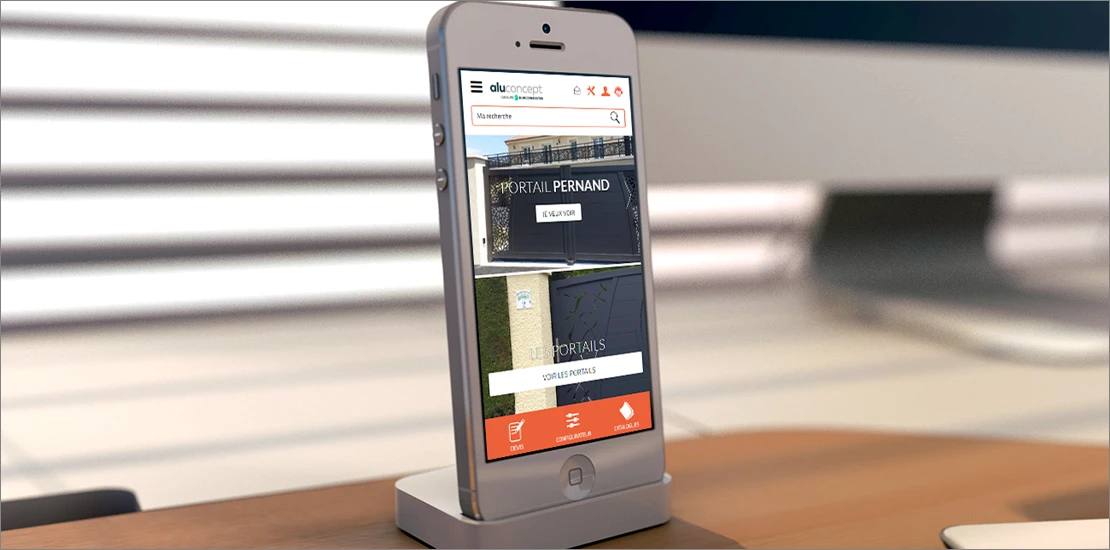 – Création du site vitrine d’Aluconcept en responsive design en créant une charte graphique à partir du nouveau logo (marque fille du logo du Groupe Burgermeister)