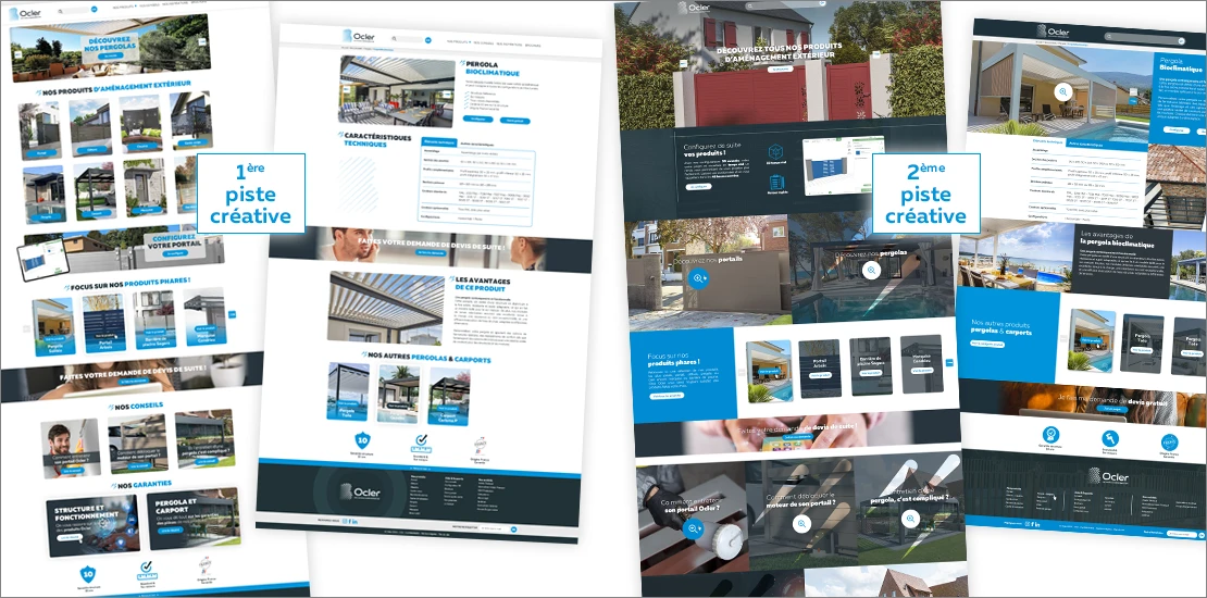 • Piste “Inspiration” : Axée sur l’impact visuel, cette proposition utilise de nombreux visuels en arrière-plan pour évoquer le confort et le bien-être apportés par les produits Ocler. L’idée était de transmettre une sensation de sécurité et de bien-être, illustrant une famille protégée et sereine.