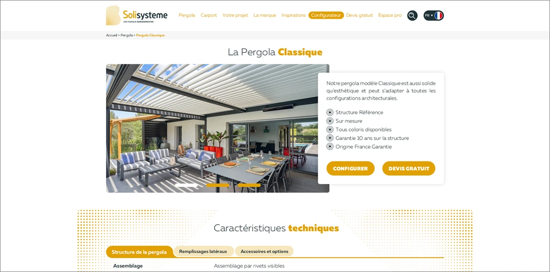 Ces créations intègrent les valeurs du manifeste de la marque (créateur de la pergola bioclimatique, confort, savoir-faire).