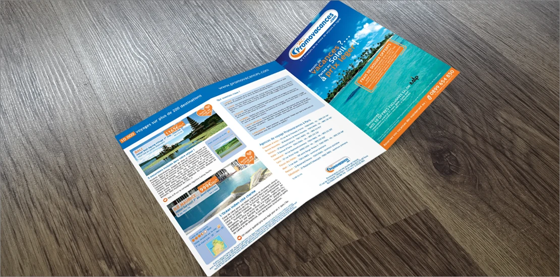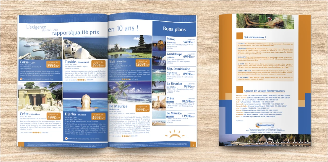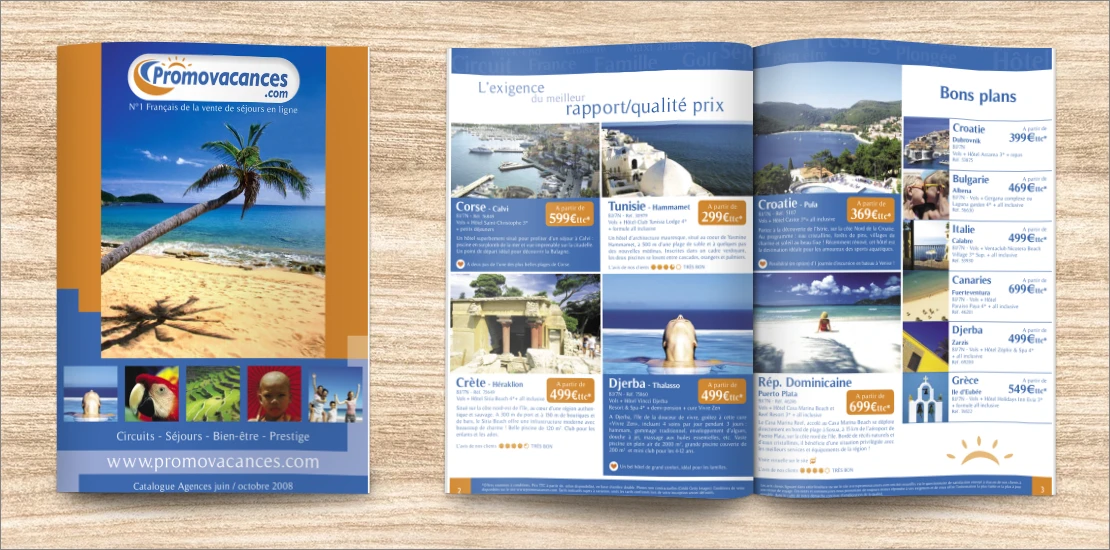 – Création d’un catalogue 8 pages pour les agences physiques Promovacances